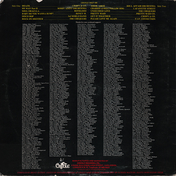 Are you a DJ on Creole’s mailing list? If so, you’d better check out their new ‘Non-Stop Disco Chartbusters’ album (CRLP 508), as your name is likely to be on the back of it!