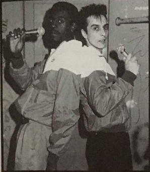 STEVE WALSH (seen here with Gloucester’s plucky disabled DJ, Metal Mickey) actually kicks off his new Stock Aitken Waterman-created catchily jogging 105⅔bpm ‘Let’s Get Together Tonite (The All Together Tonite Mix)’ (A1 Records 12A1303, via PRT) with his rabble rousing “say ho, ho, whoah-oh whoah-oh, you wot you wot” chants — and why not? Promo pressings also feature a separate, music-less, “Listen, this is Steve Walsh”-started short seasonal greeting for DJs to drop where they want. Genial 25 stone Steve sounds ever more like the late Eighties answer to Judge Dread.