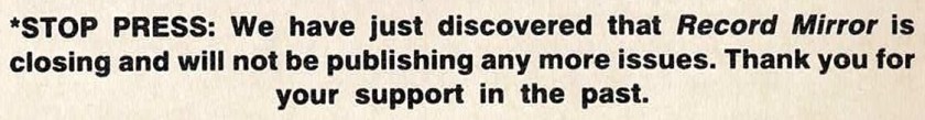 It was a shock to many of us that Record Mirror ceased publication, however, James continued in Jocks/DJ until his death. Thanks for your continuing to seek out the earlier 70s columns.